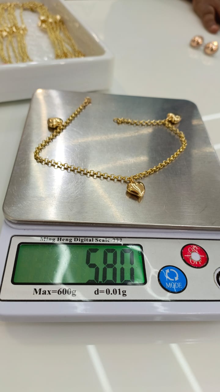 Indulge in the finest fashion with our 18 karat Italian gold anklet. Elevate any outfit with this luxurious accessory, crafted with intricate design and superior quality materials. Slip on this anklet to add a touch of elegance and sophistication to your style.