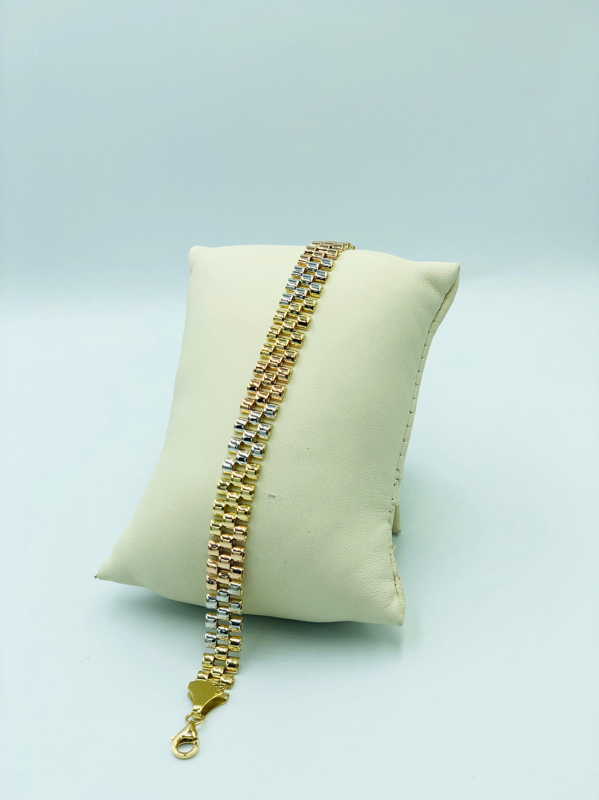 Add some flair to your wrist with this 3-tone bracelet! Perfect for any outfit, this bracelet is sure to turn heads. Get ready for some serious arm candy (or just one arm) with this unique piece.
