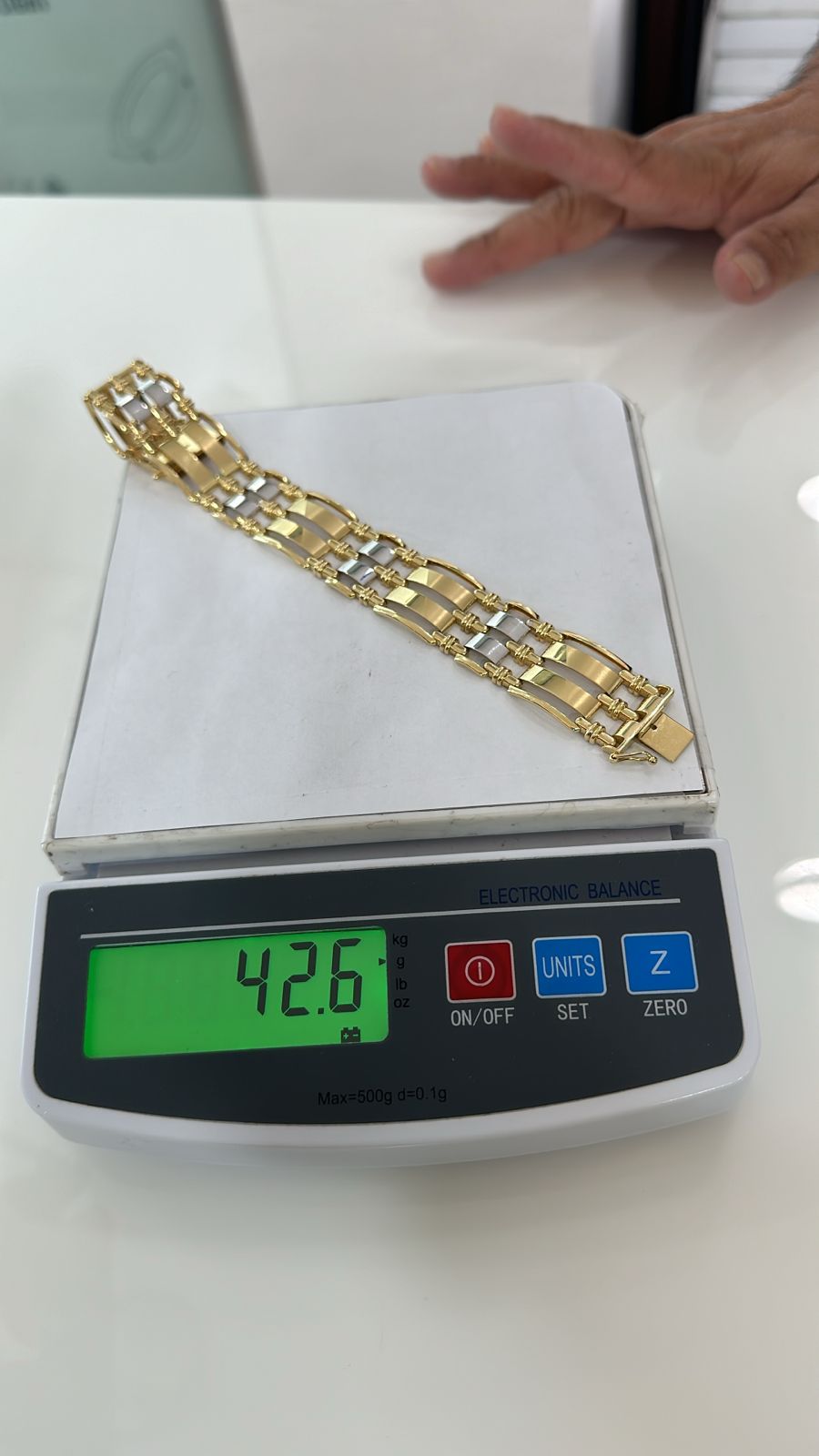 Elevate your style and add a touch of elegance with our stunning 18 Karat Bracelet. Hand-crafted with the finest materials, this Bracelet is the perfect accessory for any occasion. Its timeless design and durability make it a great addition to any jewelry collection. Upgrade your look and make a statement with our Bracelet!