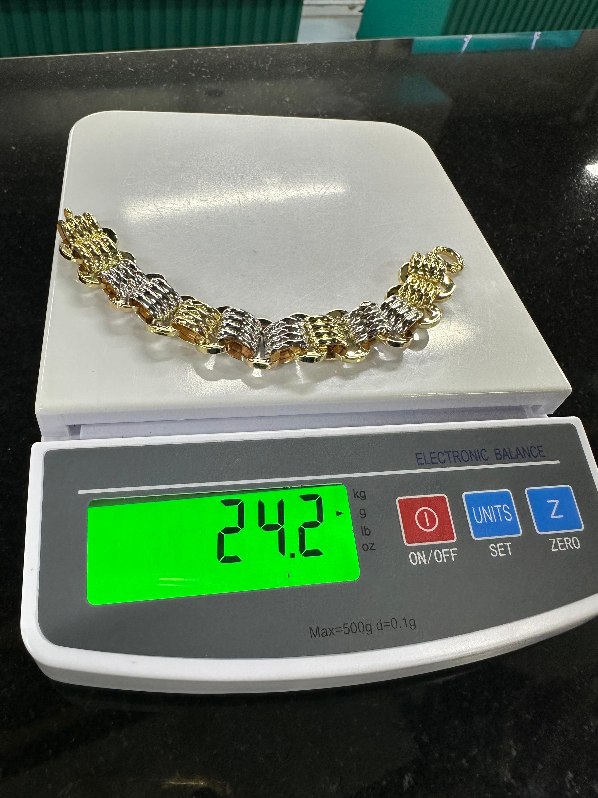 Enhance your look with our stylish bracelet! Handcrafted with intricate details, this piece adds elegance and sophistication to any outfit. Stand out from the crowd and make a statement with this unique bracelet. Elevate your style with this must-have accessory!