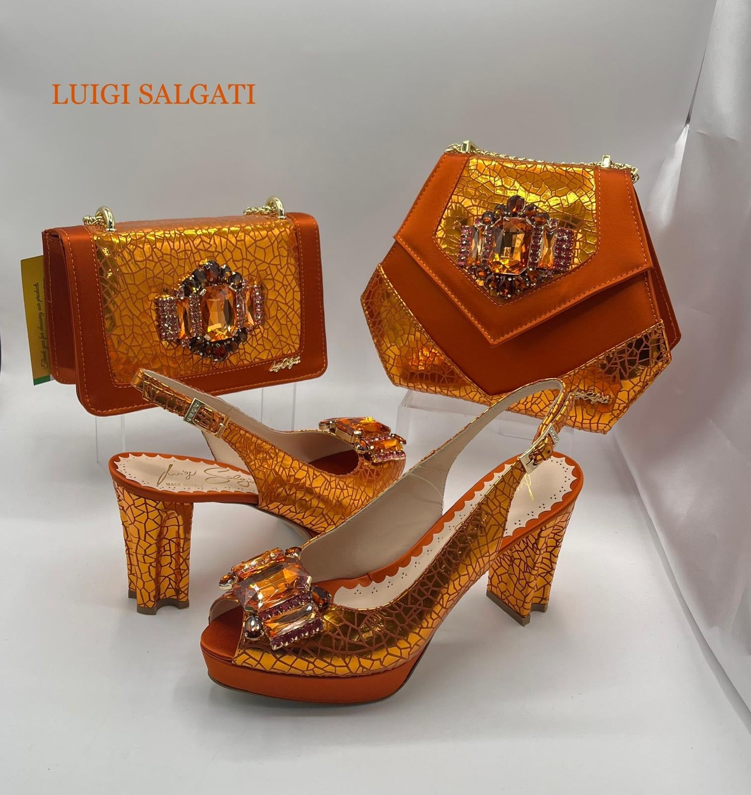 Elevate your ensemble with this refined Italian Shoe and Bag set, where timeless craftsmanship meets contemporary elegance. Meticulously designed and expertly constructed, this coordinated pairing seamlessly complements any wardrobe. The shoes feature premium materials and impeccable finishing, while the matching bag offers both style and practicality for the discerning individual. Perfect for special occasions or everyday sophistication, this set embodies the artistry and quality that Italian design is renowned for. A versatile investment piece that transcends trends.