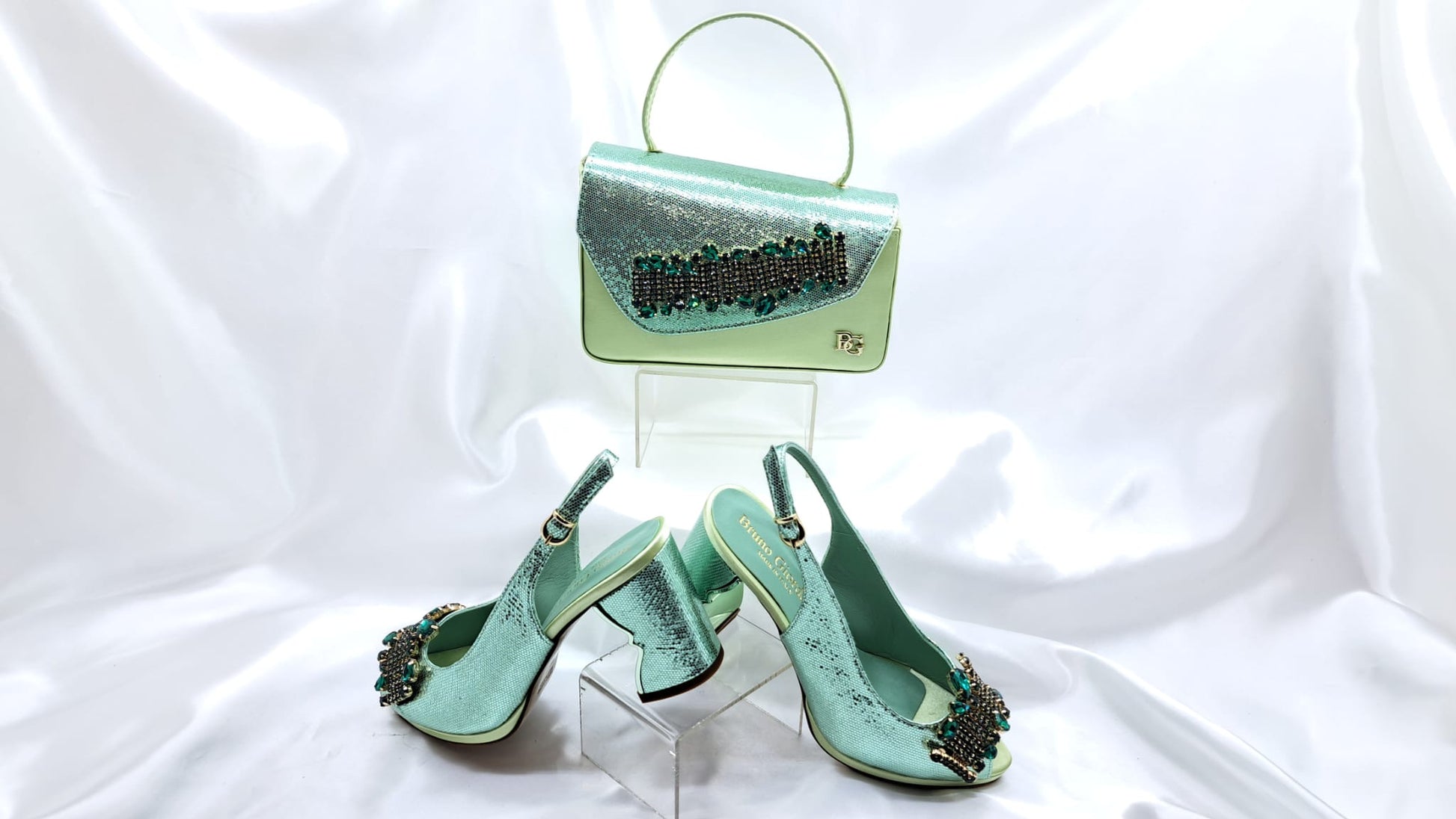 Elevate your ensemble with this refined Italian Shoe and Bag set, where timeless craftsmanship meets contemporary elegance. Meticulously designed and expertly constructed, this coordinated pairing seamlessly complements any wardrobe. The premium materials and attention to detail reflect the heritage of Italian artisanal tradition, while the versatile styling ensures effortless sophistication for both everyday occasions and special events. A curated collection that embodies luxury and understated grace.